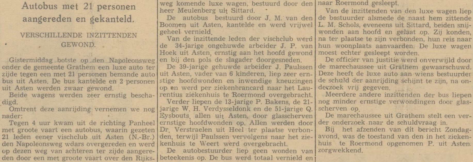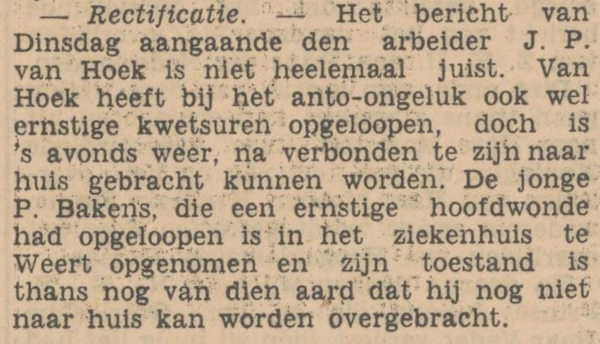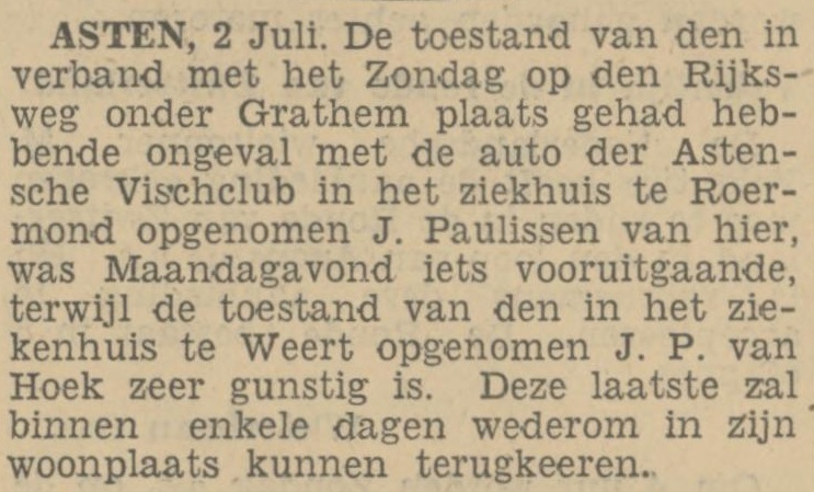 Voor zijn huwelijk had Johannes Petrus (Jan) van Hoek als 34-jarige nog een ongeluk met een bus van de visclub, zoals gemeld in de Nieuwe Venloosche Courant van 02-07-1934: