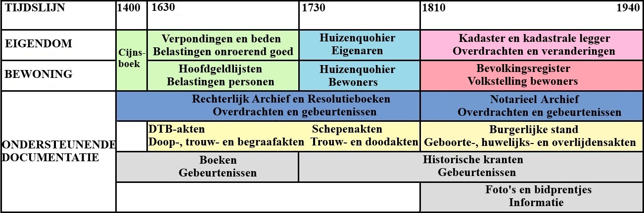 De bewoningsgeschiedenis betreft het eigendom en de bewoning van huizen over de periode 1630 tot 1940 in het dorp Asten en de omliggende gehuchten, waarbij gebruik wordt gemaakt van de volgende documentatie: